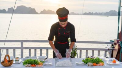 • 12:45 – 14:00: Savor a buffet lunch whilst enjoying the majestic views of the World Natural Wonder, Halong Bay limestone islets.