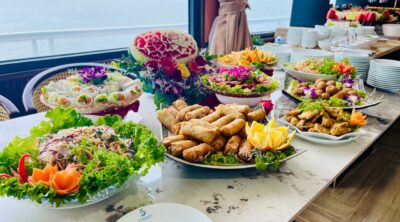 • Lunch on the cruise is served with seafood, meats & Vietnamese rice. Request for vegetarian food or diet food should be informed at least 01 day before departure.
