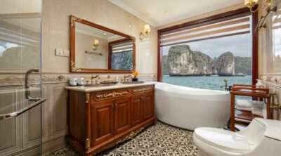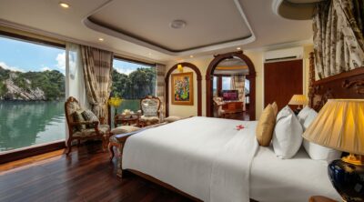 The Emperor Experience cruise is more than just a mode of transportation – it’s a 5-star floating palace that brings the grandeur of the open sea to life. Inspired by the lavish lifestyle of Emperor Bao Dai, the last monarch of Vietnam, this exceptional vessel channels the elegance and luxury of the 1930s. Designed to offer a refined atmosphere, it invites discerning travelers to immerse themselves in the rich culture, history, and culinary delights of Vietnam. Every detail has been carefully curated, ensuring that even the most refined guests are enveloped in timeless sophistication and charm.