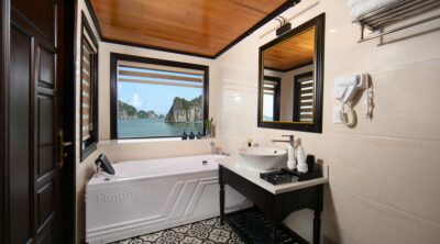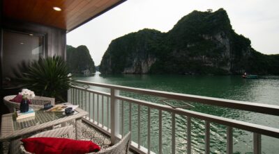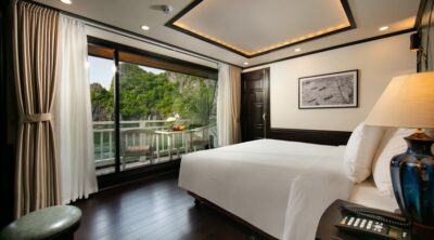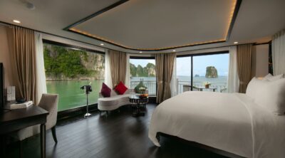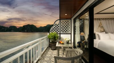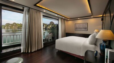 • Every accommodation features a sizable private balcony with glass doors, which lets in more natural light, and provides guests with a sweeping view of the breathtaking Ha Long Bay.