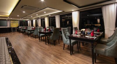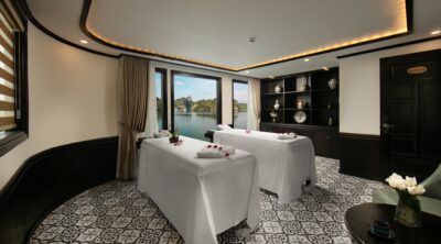 Since its launch in 2021, the Hermes Cruise has quickly set a new standard for luxury and sophistication in Halong Bay. Inspired by the god Hermes, this cruise is not just a means of travel but a promise of exceptional journeys. Imagine yourself floating between the blue sky and emerald waters, unwinding in one of Halong’s two exclusive infinity pools aboard the Hermes Cruise, where the horizon seamlessly blends with the legendary bay. Every refined amenity and modern design element on Hermes is crafted to deliver an unforgettable experience, even for the most discerning travelers.