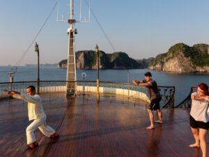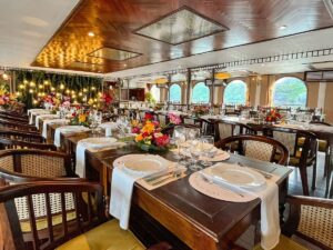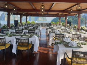 The Indochine cruise stands as the epitome of luxury on Lan Ha Bay, a true gem in the Indochina Sails fleet. With 43 opulent cabins, it offers a range of accommodations, including Junior Suites, Suites, Executive Suites, and the prestigious President Suite. Each cabin is exquisitely crafted from premium oak wood, adorned with expansive windows and private balconies, providing guests with unparalleled views of the breathtaking surroundings. The cruise’s design is a tribute to the elegance of Vietnam’s colonial-era art, blending history with modern sophistication to create a refined and distinctive ambiance.