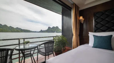Set off on a captivating voyage through the serene waters of Lan Ha Bay aboard the elegant La Pandora Cruise. Surrounded by towering limestone karsts and crystal-clear waters, you’ll be swept away by the bay’s untouched beauty. Paddle through hidden caves by kayak, explore secret lagoons, or simply unwind on the sun deck as the gentle sea breeze washes over you. With La Pandora, every moment is a blend of relaxation and wonder – an unforgettable journey into the heart of nature’s masterpiece.