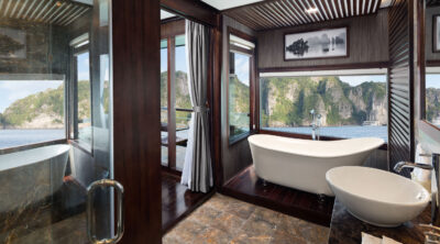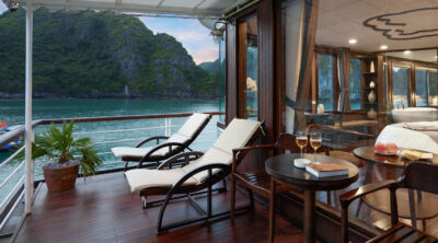 Set sail on an extraordinary journey through the mesmerizing landscapes of Halong Bay and Lan Ha Bay aboard the elegant Orchid Classic. This luxurious cruise seamlessly fuses the charm of Indochine-inspired design with contemporary sophistication, creating an ambiance that is both nostalgic and refined. Each spacious cabin features a private balcony, offering panoramic views and serene moments at sea. Savor exquisite Asian-European fusion cuisine at the onboard fine dining restaurant, unwind with soothing spa treatments, or take a dip in the pool as you glide through emerald waters. Beyond the indulgence onboard, discover the natural wonders of the bays – from mystical limestone caves and untouched beaches to tranquil floating villages.