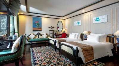 Orchid Premium Cruise is a true gem of Halong Bay, celebrated for its stunning design, exceptional service, and luxurious accommodations. With just five exclusive suites, it provides an intimate and unparalleled travel experience, standing out from the crowd of other cruises. During this unforgettable journey, guests can discover the secrets of hidden caves deep within Halong Bay and Lan Ha Bay, while immersing themselves in the rich local culture and way of life of the nearby fishing villages.