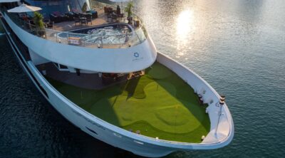 • Return to the cruise to admire magnificent sunset on the sundeck while enjoying a Sunset party. You can choose to socialize with other groups of tourists or simply watch the sunset and unwind in the seasonal swimming pool or in our golf course.