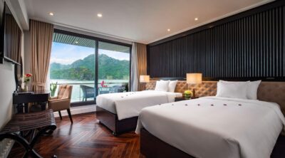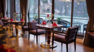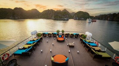 Savor the unique blend of Asian and Western culinary delights, unwind in spacious cabins featuring private balconies, and marvel at the breathtaking natural beauty that surrounds you. The Stellar of the Seas transcends the idea of mere transportation – it’s a destination in its own right. Venture to iconic spots like Surprise Cave, Titop Island, and tranquil fishing villages where you can kayak and explore hidden treasures. Let the Stellar of the Seas ignite your passion for discovery and create lasting memories on Halong Bay.