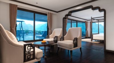 Venus Cruise, with its refined design blending tradition and modernity, stands as a brilliant symbol of Eastern culture, ready to take you on an unforgettable journey through the enchanting beauty of Lan Ha Bay. As you step aboard Venus, you’ll be instantly captivated by the cozy ambiance created from natural wood. Each grain tells a delicate story of nature, blending with the fresh air of Lan Ha Bay to offer a sense of tranquility and closeness. Let Venus guide you past majestic limestone islands, explore mysterious caves, and witness the untouched beauty of Lan Ha Bay. On the deck, you’ll enjoy the refreshing sea breeze, soak in the stunning views, and experience the perfect harmony between humanity and nature.